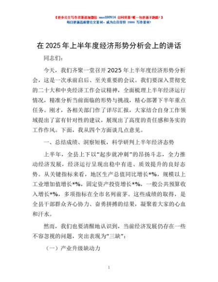 / 在2025年上半年度经济形势分析会上的讲话