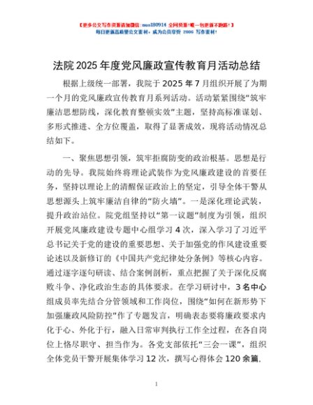 / 法院2025年度党风廉政宣传教育月活动总结