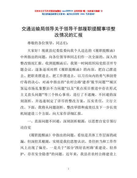 / 交通运输局领导关于领导干部履职提醒事项整改情况的汇报