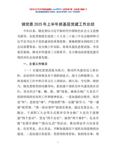 / 镇党委2025年上半年抓基层党建工作总结