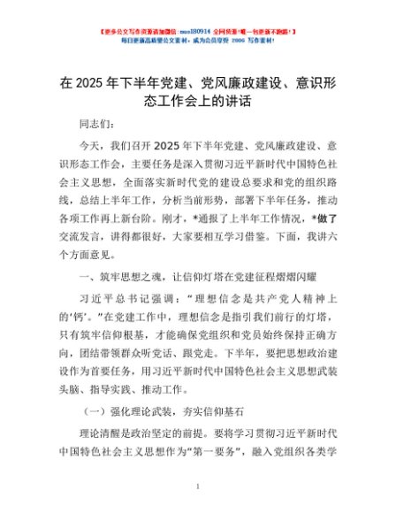 / 在2025年下半年党建、党风廉政建设、意识形态工作会上的讲话