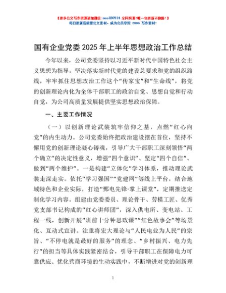 / 国有企业党委2025年上半年思想政治工作总结