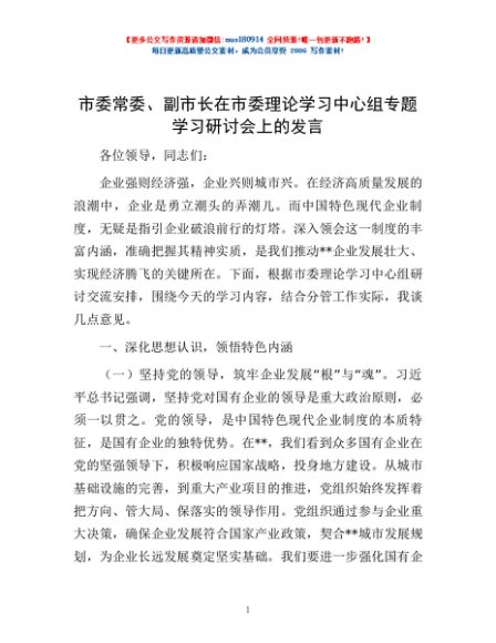 / 市委常委、副市长在市委理论学习中心组专题学习研讨会上的发言