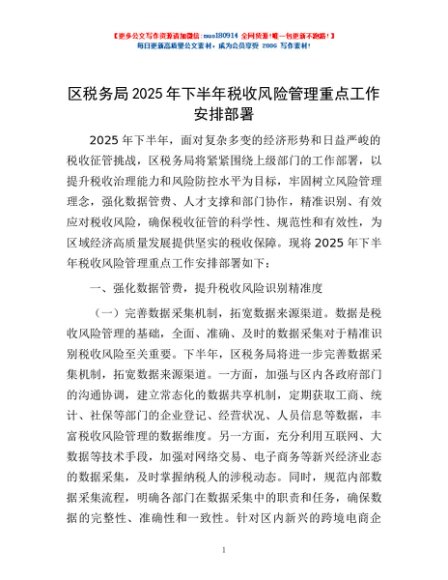 / 区税务局2025年下半年税收风险管理重点工作安排部署