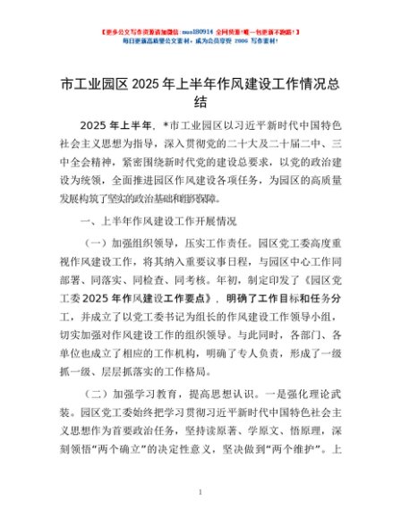 / 市工业园区2025年上半年作风建设工作情况总结