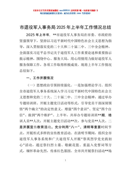 / 市退役军人事务局2025年上半年工作情况总结