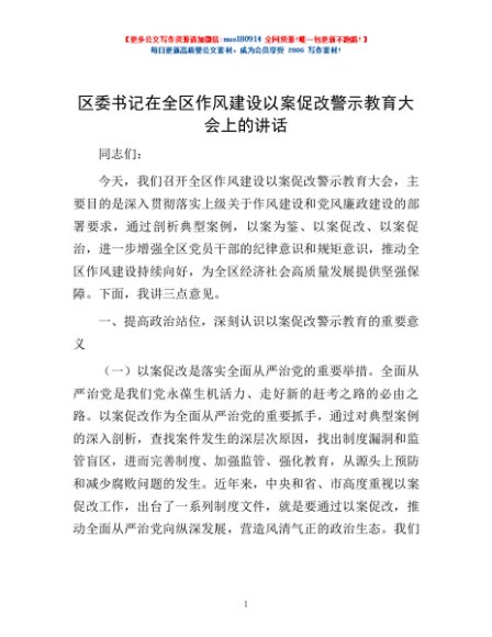 / 区委书记在全区作风建设以案促改警示教育大会上的讲话
