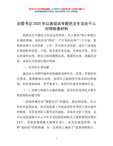 / 纪委书记2025年以案促改专题民主生活会个人对照检查材料