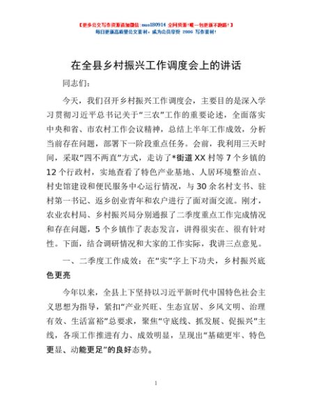 / 在全县乡村振兴工作调度会上的讲话