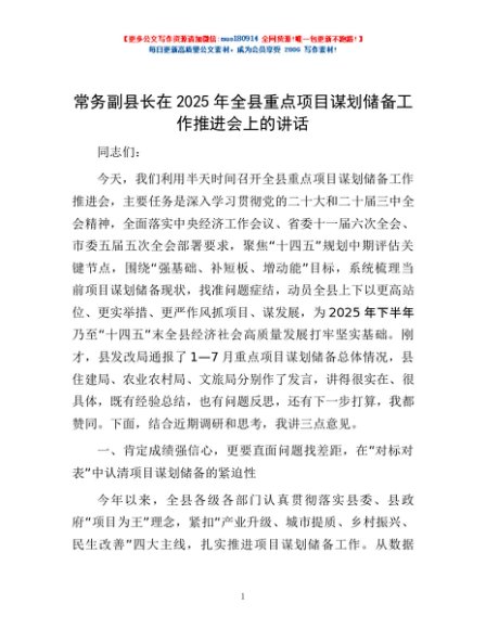/ 常务副县长在2025年全县重点项目谋划储备工作推进会上的讲话