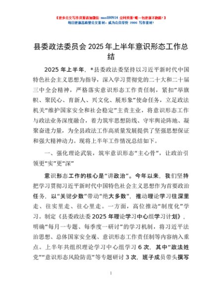 / 县委政法委员会2025年上半年意识形态工作总结