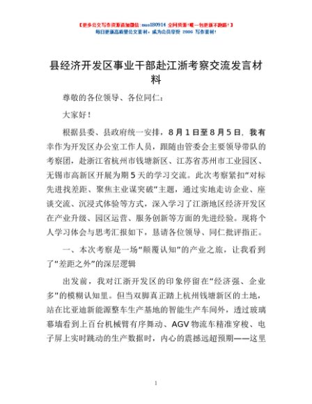 / 县经济开发区事业干部赴江浙考察交流发言材料