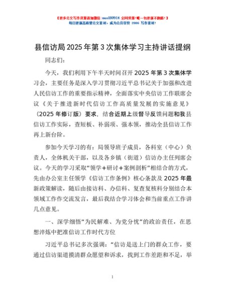 / 县信访局2025年第3次集体学习主持讲话提纲