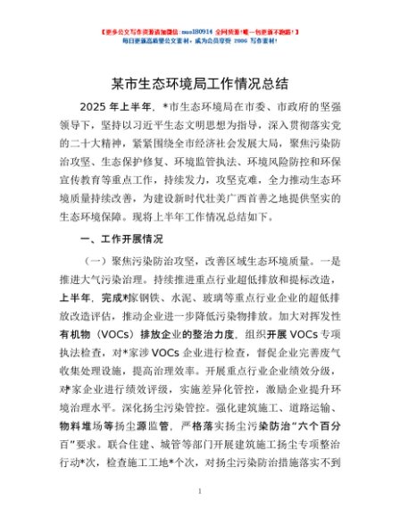 / 某市生态环境局工作情况总结
