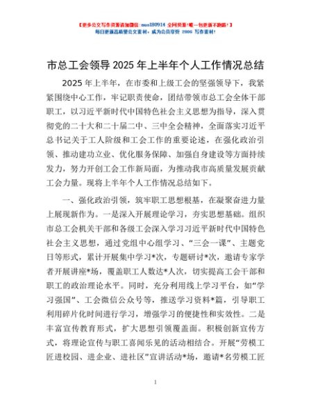 / 市总工会领导2025年上半年个人工作情况总结
