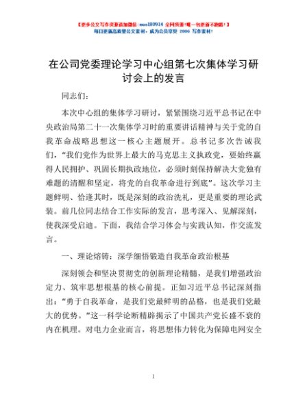 / 在公司党委理论学习中心组第七次集体学习研讨会上的发言