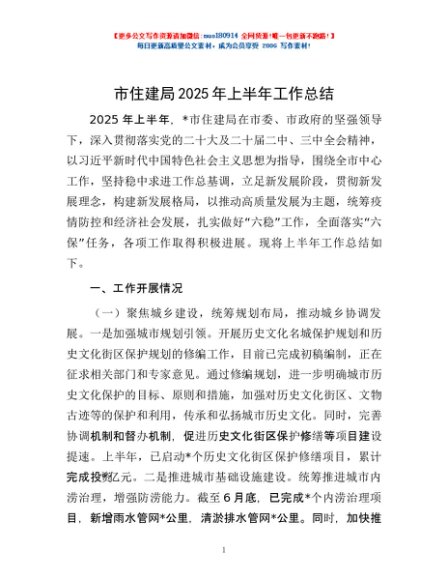 / 市住建局2025年上半年工作总结