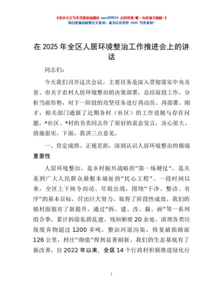/ 在2025年全区人居环境整治工作推进会上的讲话