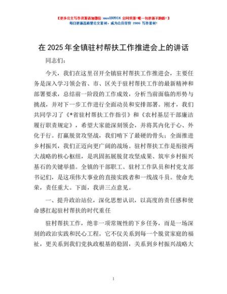 / 在2025年全镇驻村帮扶工作推进会上的讲话