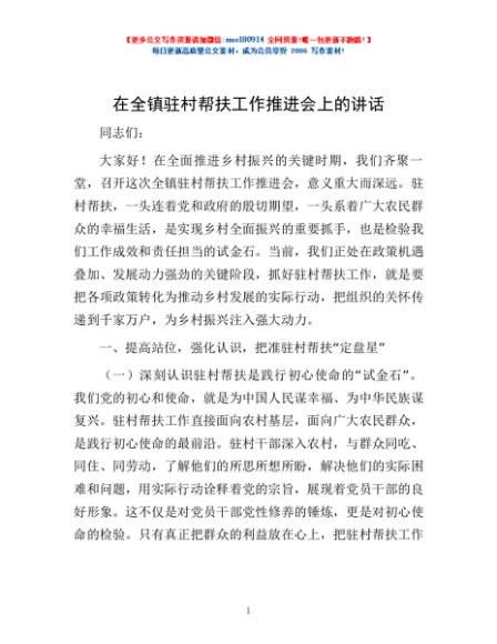 / 在全镇驻村帮扶工作推进会上的讲话