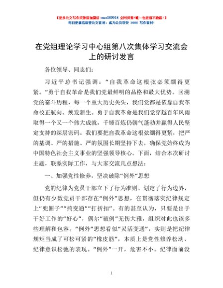 / 在党组理论学习中心组第八次集体学习交流会上的研讨发言