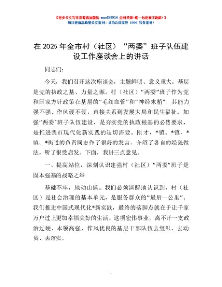 / 在2025年全市村(社区)“两委”班子队伍建设工作座谈会上的讲话