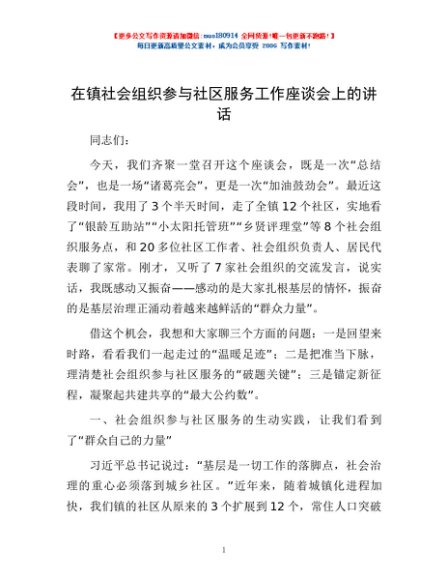 / 在镇社会组织参与社区服务工作座谈会上的讲话
