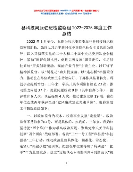 / 县科技局派驻纪检监察组2022-2025年度工作总结