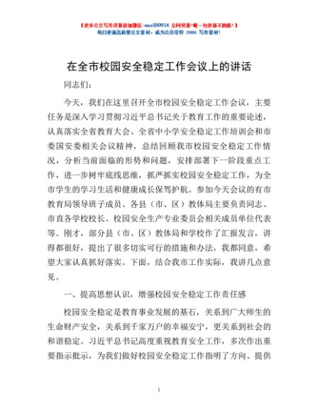 / 在全市校园安全稳定工作会议上的讲话
