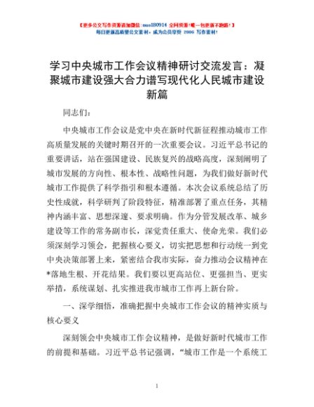 / 学习中央城市工作会议精神研讨交流发言:凝聚城市建设强大合力 谱写现代化人民城市建设新篇