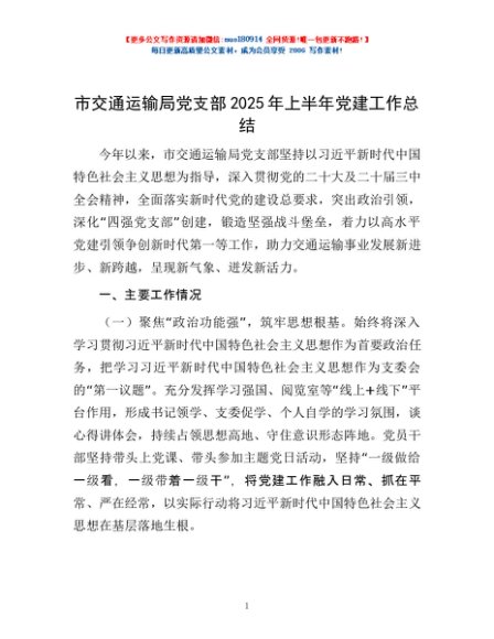 / 市交通运输局党支部2025年上半年党建工作总结