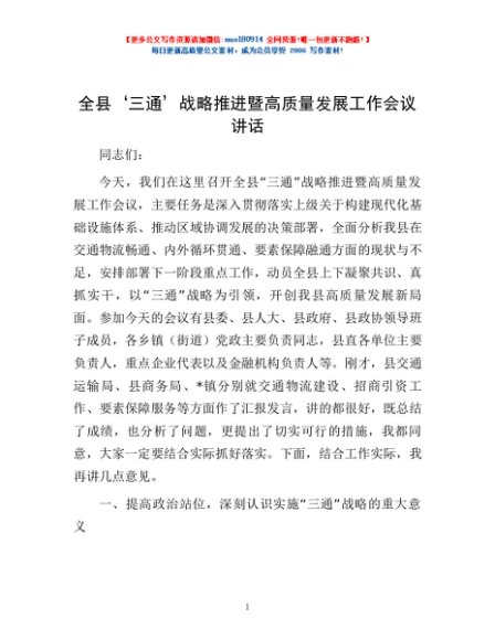/ 全县‘三通’战略推进暨高质量发展工作会议讲话