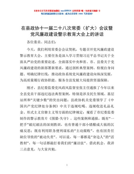 / 在县政协十一届二十八次常委(扩大)会议暨党风廉政建设警示教育大会上的讲话