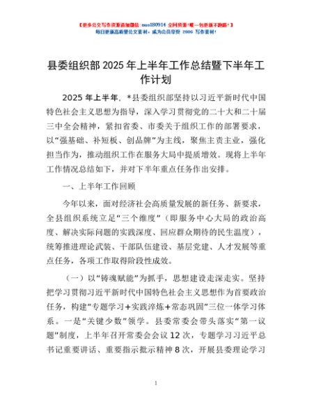 / 县委组织部2025年上半年工作总结暨下半年工作计划