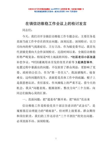 / 在镇信访维稳工作会议上的检讨发言