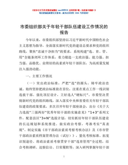 / 市委组织部关于年轻干部队伍建设工作情况的报告