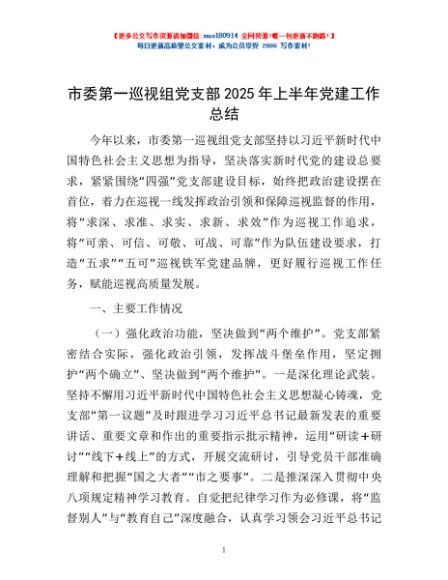 / 市委第一巡视组党支部2025年上半年党建工作总结