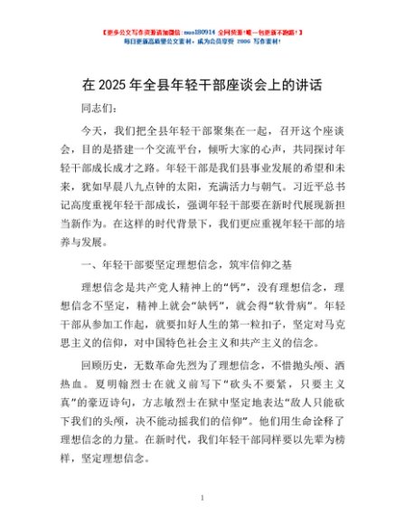 / 在2025年全县年轻干部座谈会上的讲话
