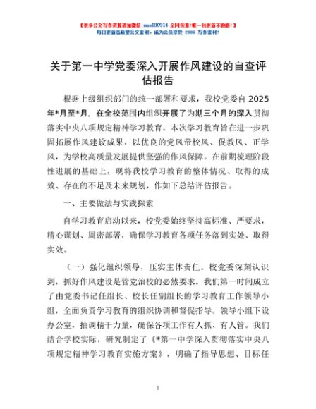 / 关于第一中学党委深入开展作风建设的自查评估报告