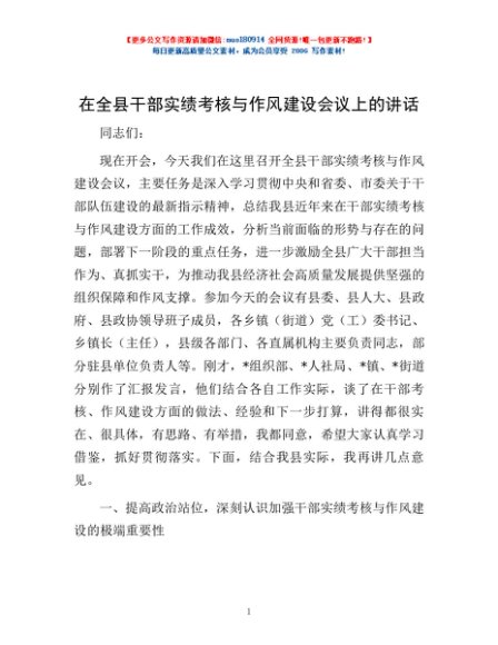 / 在全县干部实绩考核与作风建设会议上的讲话