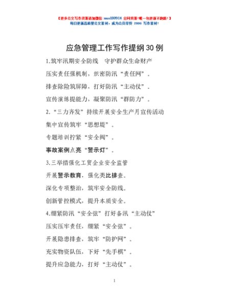 / 应急管理工作写作提纲30例