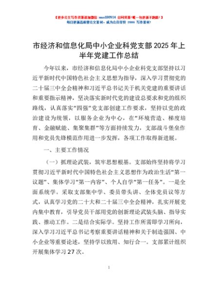 / 市经济和信息化局中小企业科党支部2025年上半年党建工作总结
