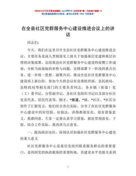 / 在全县社区党群服务中心建设推进会议上的讲话