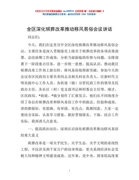 / 全区深化殡葬改革推动移风易俗会议讲话