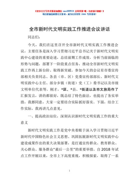 / 全市新时代文明实践工作推进会议讲话