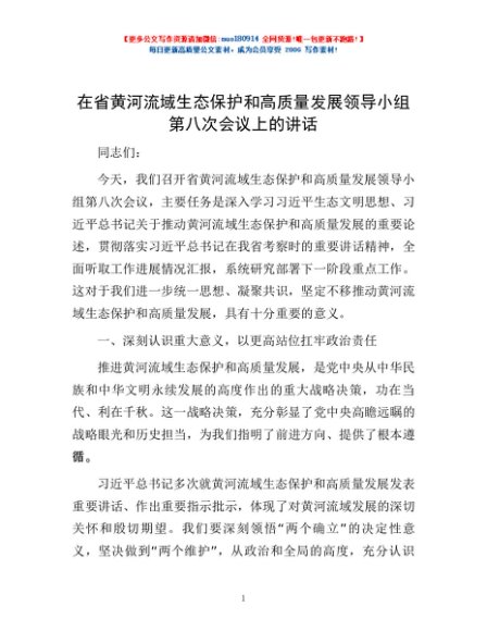 / 在省黄河流域生态保护和高质量发展领导小组第八次会议上的讲话