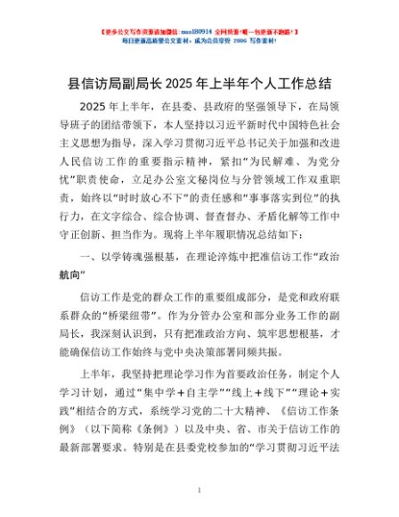 / 县信访局副局长2025年上半年个人工作总结