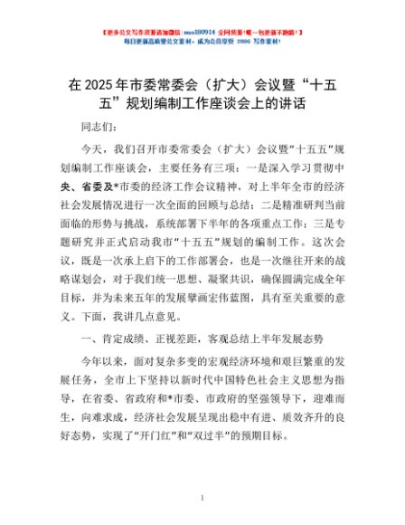 / 在2025年市委常委会(扩大)会议暨“十五五”规划编制工作座谈会上的讲话