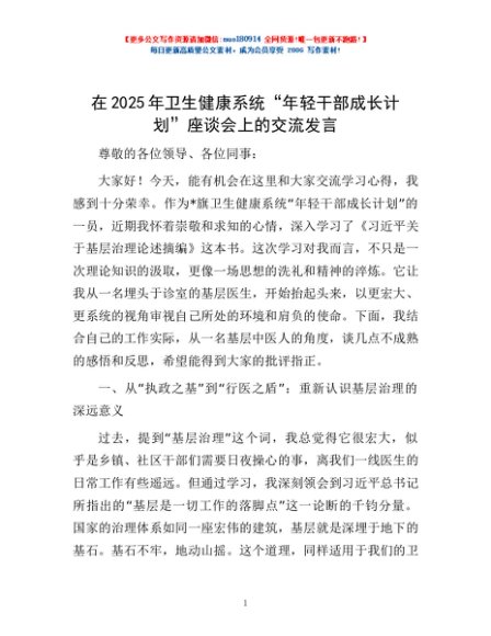 / 在2025年卫生健康系统“年轻干部成长计划”座谈会上的交流发言