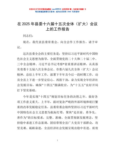 / 在2025年县委十六届十五次全体(扩大)会议上的工作报告
